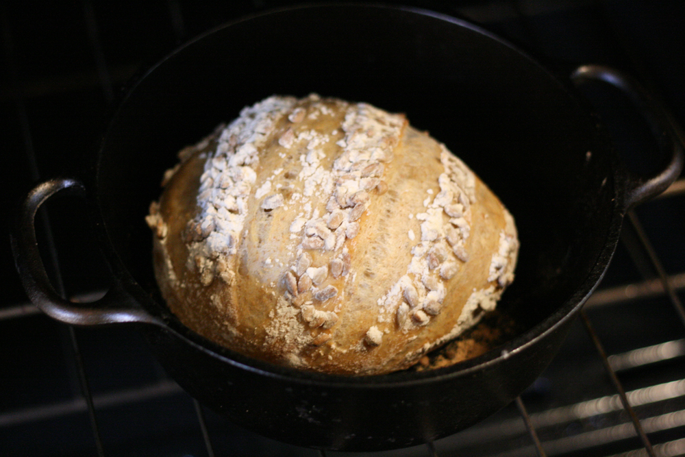 Post a comment or leave a trackback: Trackback URL. Loaf after baking in the dutch oven for 25 minutes Loaf after baking in the dutch oven for 25 minutes